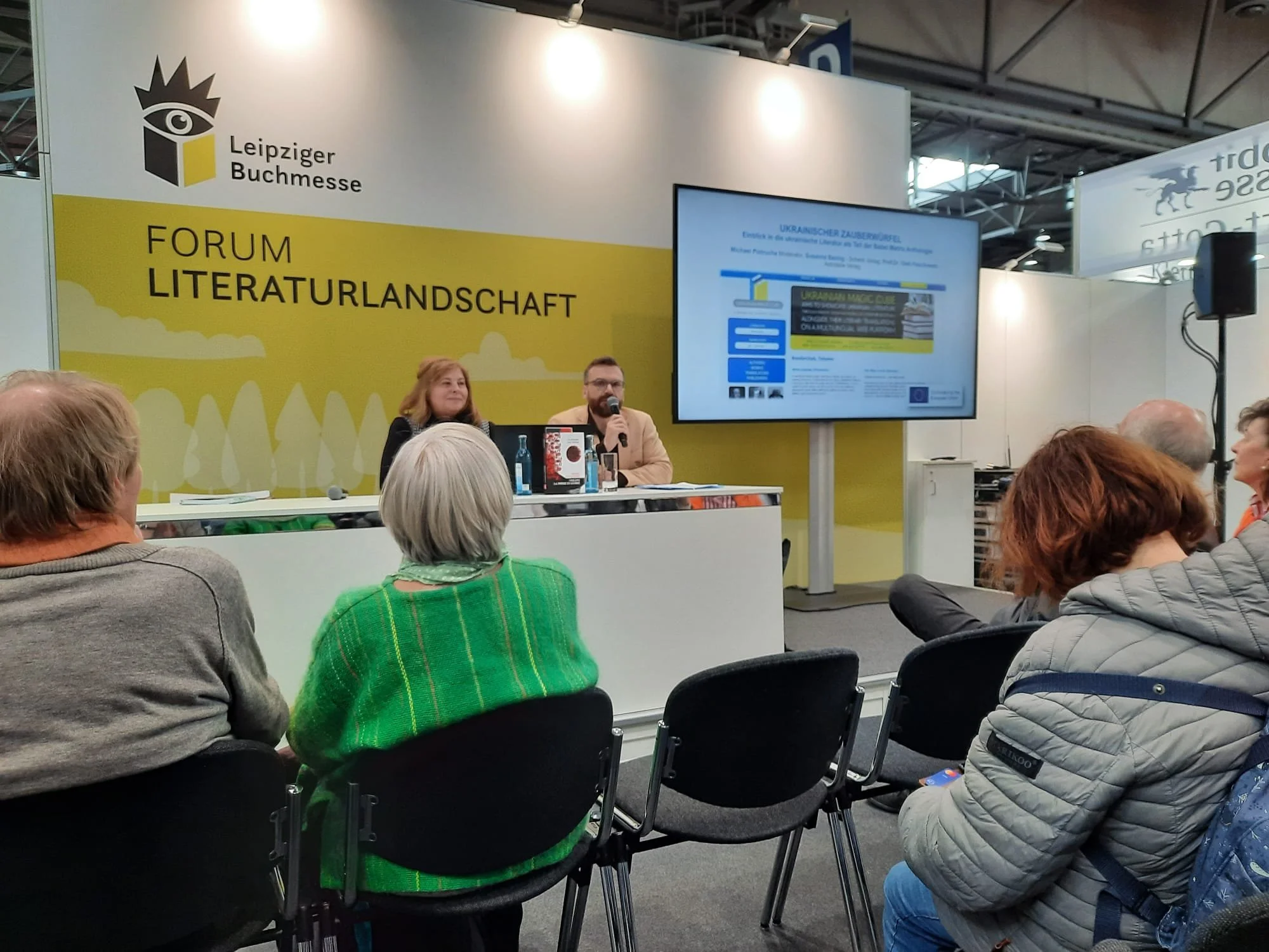 Teilnehmende: Michael Pietrucha-Moderator, Oleh Feschowetz -Astrolabe Verlag, Susanna Bazing Schenk Verlag